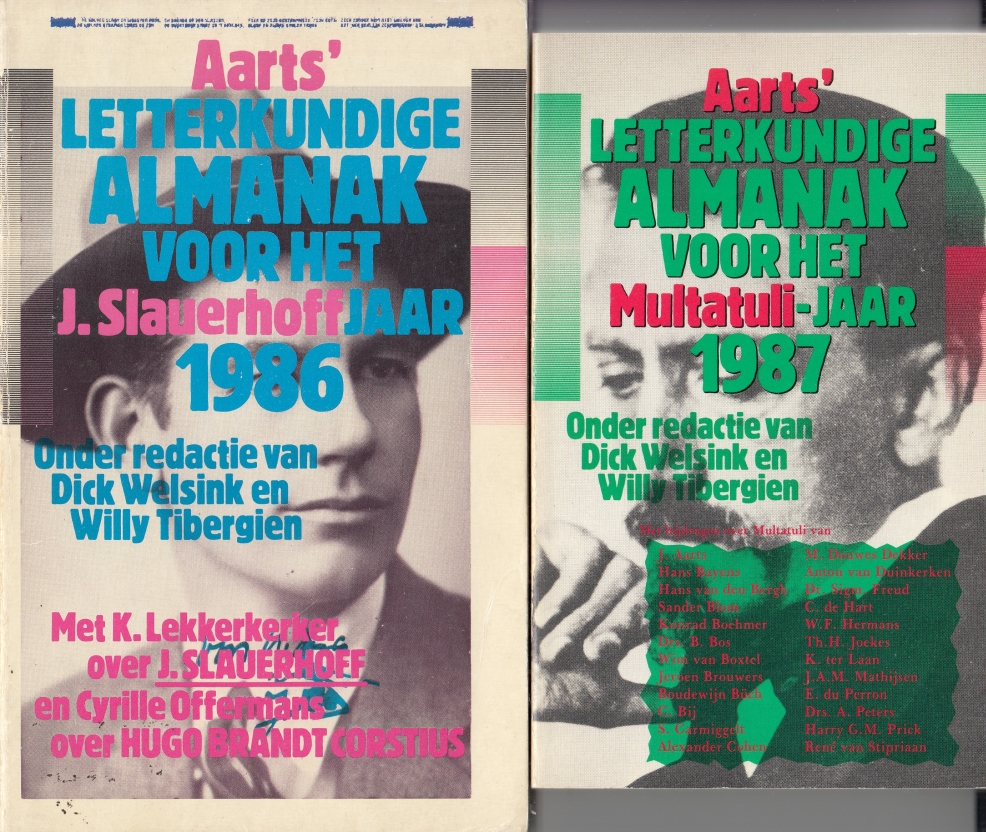 5. (ALMANAK) Aarts’ letterkundige almanak. 1980-1991. (Onder redactie van Dick Welsink en Willy Tibergien). Amsterdam/ Edegem/ Gent, C.J. Aarts/ Contact Antwerpen/ Poëziecentrum, [1979]-1991. Negen delen (1988 tot en met 1991 beslaan tezamen éen deel, vandaar). Ingenaaid. Geïllustreerd.