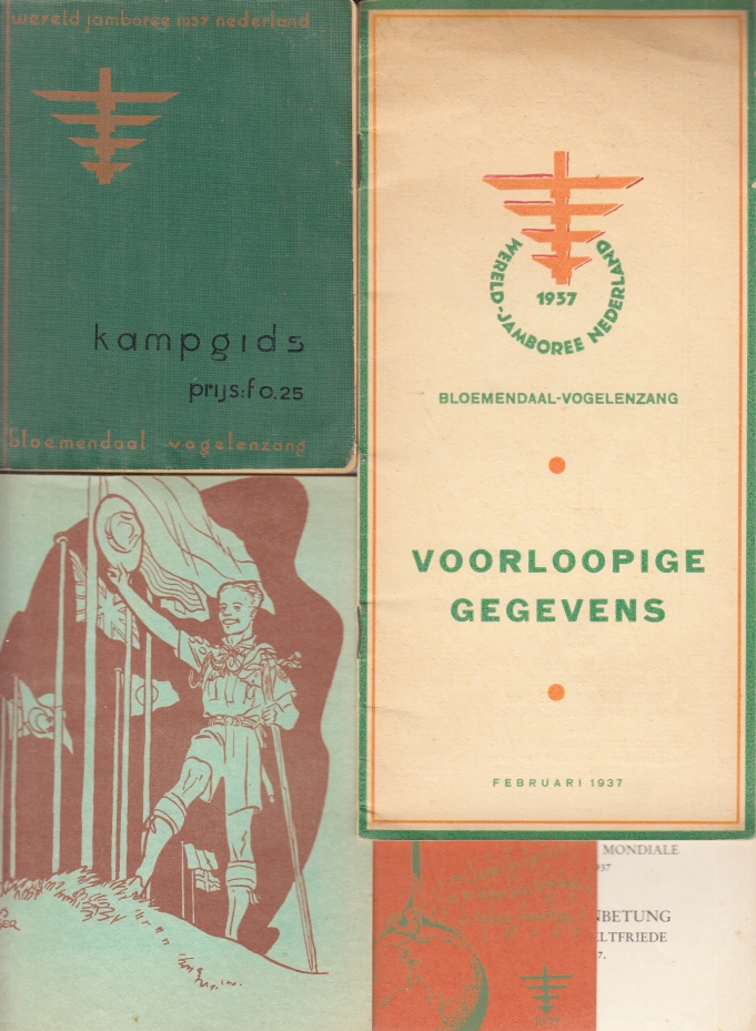 24. JAMBOREE 1937 Dossier Jamboree 1937. bestaande uit: 1. Brochure Voorloopige gegevens (februari 1937). 23 x 11 cm. Geniet. 24 p. Met plaatjes.