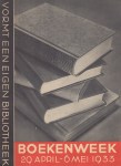 12. (BOEKENWEEK 1933) ‘Vormt een eigen bibliotheek/ Boekenweek 29 April – 6 Mei 1933’. Vouwblad. 18,2 x 13,3 cm. Ontwerp reclamebureau Vandersluys & Meinecke. Illustratie op voor- en achterzijde omslag, tekst binnenin. Wat roestplekjes.