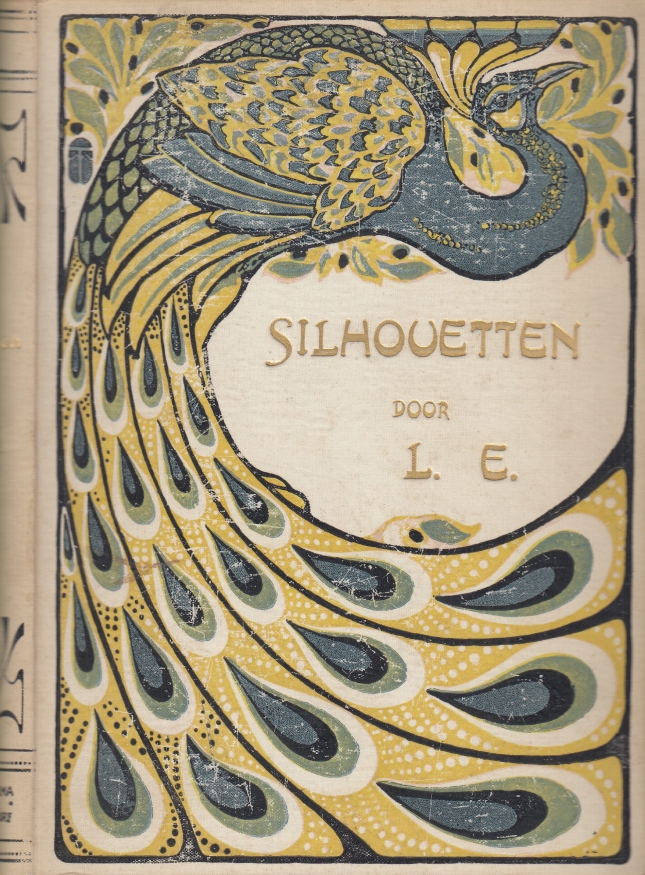 * De uiterst aantrekkelijke Jugendstil-boekband, uitgevoerd door Elias P. van Bommel, is rechtstreeks gekopieerd van de beroemde pauw die voor uitgeverij Macmillan is ontworpen door de in Amerika geboren, in Canada opgeleide Schot Albert Angus Turbayne. Het ontwerp werd gebruikt voor vergulde banden en gekleurde schutbladen, maar in precies dezelfde kleurstelling voor Macmillan’s Peacock-serie advertenties uit de jaren 1890. Dit boek, geschreven door Frauck J.G.W.C. Engelberts (1880-1929; niet Louise, zoals ze vaak wordt genoemd), verscheen voor het eerst in 1906 en was vanaf het begin voorzien van deze prachtige band.