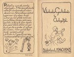 1. 1945 Vaderlandse geschiedenis in oorlogstijd. [Zonder plaats of uitgever, 1945]. 16 x 10 cm. Twee in elkaar gevouwen bladen (8 p.). Op elke bladzijde een tekening met geschreven tekst in kader. Zeer gaaf.