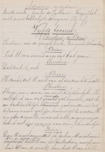26. (MANUSCRIPT, 1890). (EPEN, D.G. van). GONDINET, Edmond Christine. Tooneelspel in vier bedrijven uit het Fransch van Edmond Gondinet door Didericus G. van Epen. (Geheel in 1890 met de hand geschreven). Linnen band, in goud op het voorplat bestempeld ‘Christine’, op de rug ‘Chr.’. Met datering in ander handschrift op de titelpagina: ‘c. 14.5.’90/ f. 1.6.’90’ en de toevoeging ‘Ned. Tooneel’. 21 x 17 cm. 236 gelinieerde bladen, eenzijdig beschreven, enkele ook met notities achterop. Duidelijk leesbaar handschrift in blauwzwarte inkt, met enkele doorhalingen en verbeteringen (soms in potlood), deels in een andere hand. Boekband iets versleten, wat roest.