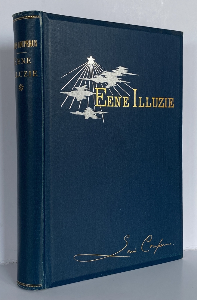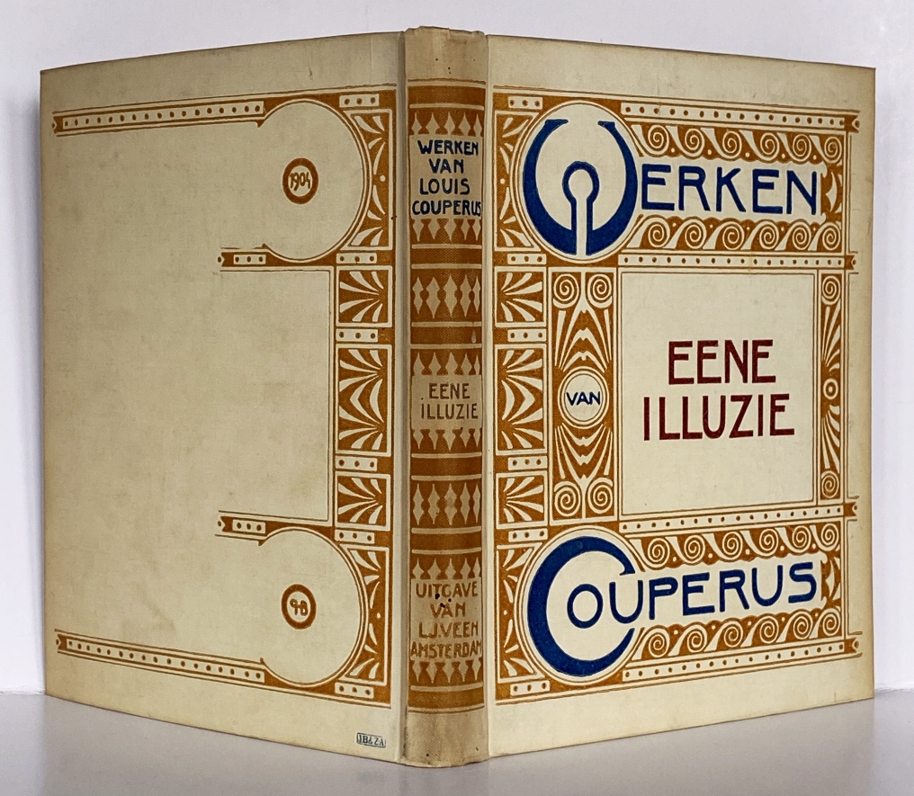 18. COUPERUS, Louis Eene illuzie. Amsterdam, Veen, [1901]. Linnen (‘maskerband’ van B. Wierink). (8), 208 p. 2e druk. Rug verkleurd en bovenaan licht beschadigd, watervlekjes op voorkant. Vooroorlogs merkje van boekhandel D. Bolle, Rotterdam.