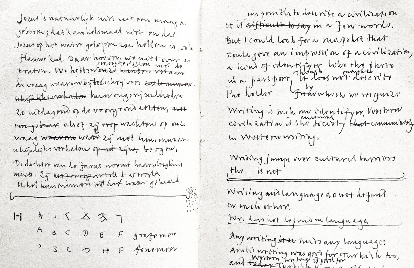 Meestal is een schrijfsel klein en subtiel, het fluistert iets uit een verleden, iets over de doden die ooit nogal levend waren, misschien wel levender dan wij ooit geweest zijn, of waren wij nou zelf het levendst?