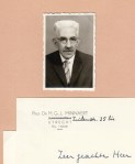 28. MINNAERT, M. Foto en handgeschreven briefje voor een handtekeningenjager. Op eigen briefpapier met verbeterd adres, gedateerd ‘Utrecht, 5-IV-64.’ Gesigneerd ‘M. Minnaert’. Drie regels.