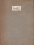1. (ZILVERDISTEL). VERLAINE, Paul Romances sans paroles. (Den Haag, De Zilverdistel, 1913 [= 1914]). Ingenaaid met stofomslag en gedrukt etiketje met schrijver en titel. (4), 52 p. Gezet uit een letter van Peter Schoeffer van Gernsheim en gedrukt op de handpers van Joh. Enschedé en Zonen te Haarlem in rood, blauw en zwart op Keizerlijk Japans papier in een oplage van 130 genummerde exemplaren. Rond rug zeer licht verbruind, nummer onder het colofon weggegumd.