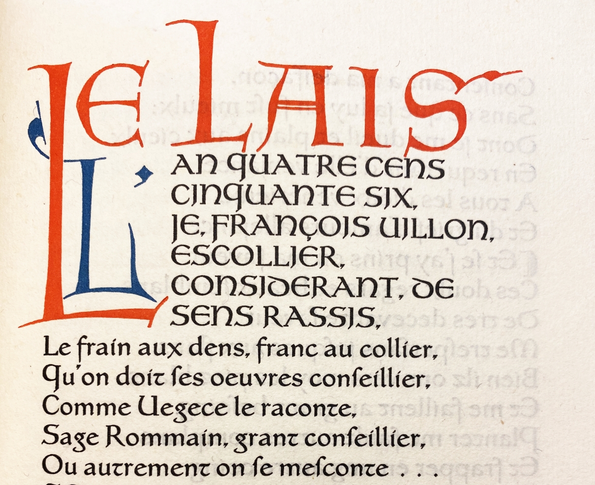 9. (KUNERA PERS). VILLON, François Oeuvres de François Villon. Le lais, Le testament et ses ballades. (Den Haag, Kunera Pers, 1926). Oorspronkelijk soepel perkament met vergulde rugbelettering. In papieren foedraal. (4), 142 p. Met de hand gezet en gedrukt door J.F. van Royen in zwart, rood en blauw in een oplage van 110 exemplaren. Mooi exemplaar.