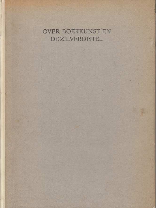 * Zeldzame variant met smalle perkamenten rug en platten van grijs karton. Eerste boek van De Zilverdistel gezet uit de eigen letter, de Zilvertype, ontworpen door S.H. de Roos.