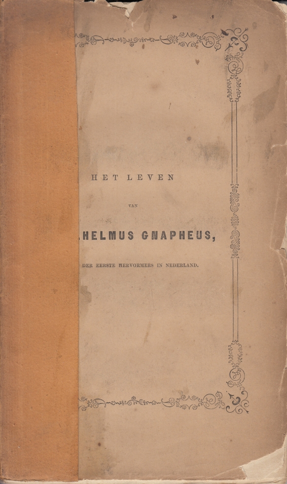 25. (HAVERSCHMIDT, François). H. ROODHUYZEN Jr. Het leven van Guilhelmus Gnapheus, éen der eerste hervormers in Nederland. Academisch proefschrift, ter verkrijging van de graad van Doctor in de Godgeleerdheid aan de Hoogeschool te Leiden. Amsterdam, J.R. Loman jr., 1858. Ingenaaid. XVII, 96 p. Met ingeplakte stellingen. Omslag aan de randen beschadigd, rug en 1/4 van voor- en achterplat ter versteviging overplakt met zwaar papier.