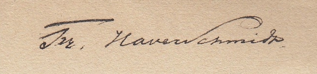 * Uit de bibliotheek van François Haverschmidt (alias Piet Paaltjens), met op het voorste schutblad sierlijk in inkt: ‘Fr. Haverschmidt’. Met twee correcties in inkt in de meegebonden stellingen, wellicht door Haverschmidt, en enkele half uitgegumde aantekeningen in de inhoudsopgave van een andere hand.