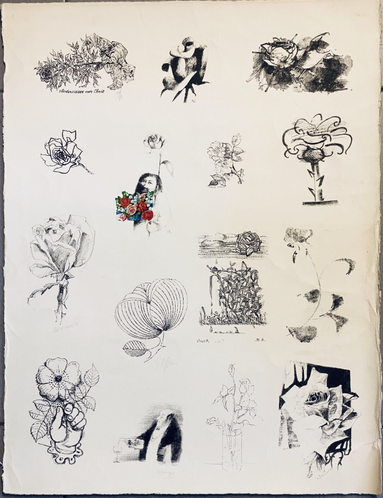 20. KUIK, William D., en vele anderen Originele litho vervaardigd ter gelegenheid van het 25-jarig bestaan van Stichting De Roos. 65,5 x 50,5 cm. Gedrukt door Piet Clement. Hoekjes en randen gekreukt.