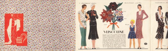 * Dames- en kindermode in bloemrijke kleuren, charmante modefolder van de Vliscofabrieken (Helmond), die gespecialiseerd waren in imitatiebatik en decoratief katoendrukwerk. De in het begin van de 19e eeuw door J.W. Sutorius gestichte textielververij bestaat na ruim tweehonderd jaar nog steeds; de naam Vlisco is afgeleid van de familie Fentener van Vlissingen, die het bedrijf in 1846 had overgenomen.