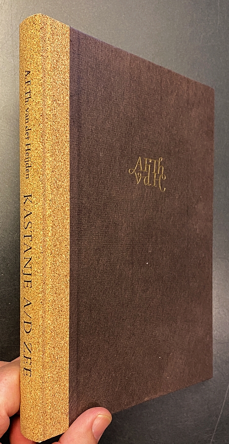 14. HEIJDEN, A.F.Th. van der Kastanje a/d zee. De Tandeloze Tijd 7. Den Haag, (Statenhofpers), 2016. Kurken rug met platten overtrokken met Awagami Mingeishi Maroon (Boekbinderij Van Waarden). 224 p. Gezet uit de Bembo en gedrukt door Jan de Jong in een oplage van 176 door de auteur genummerde en gesigneerde exemplaren. 1e druk.