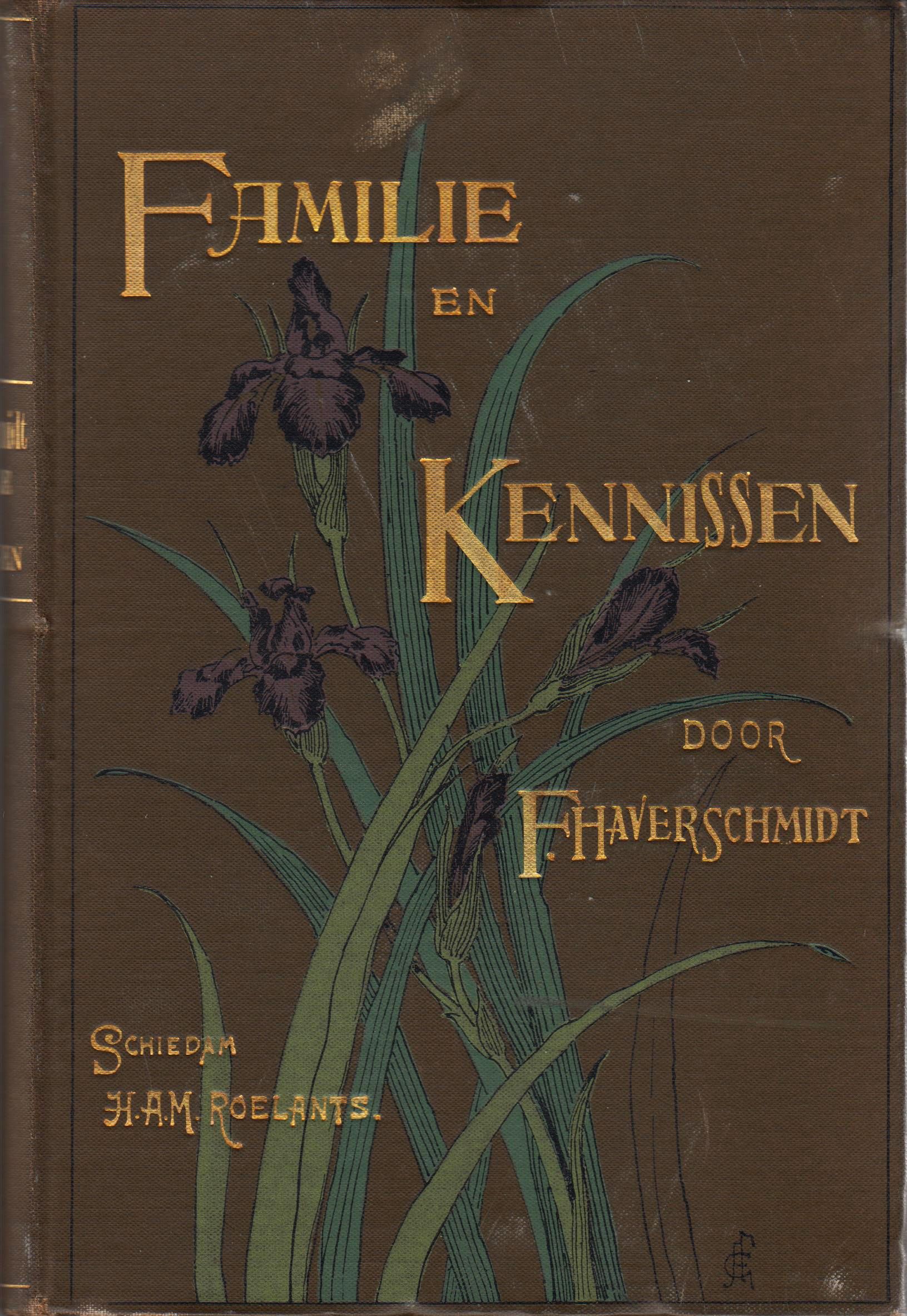 36. (GIPS, Bram). HAVERSCHMIDT, F. Familie en kennissen. (Met voorwoorden van de auteur en de uitgever). Schiedam, Roelants, (1894). Gedecoreerd linnen. (8), 228 p. 4e druk. Band minimaal geschaafd, maar een mooi exemplaar.