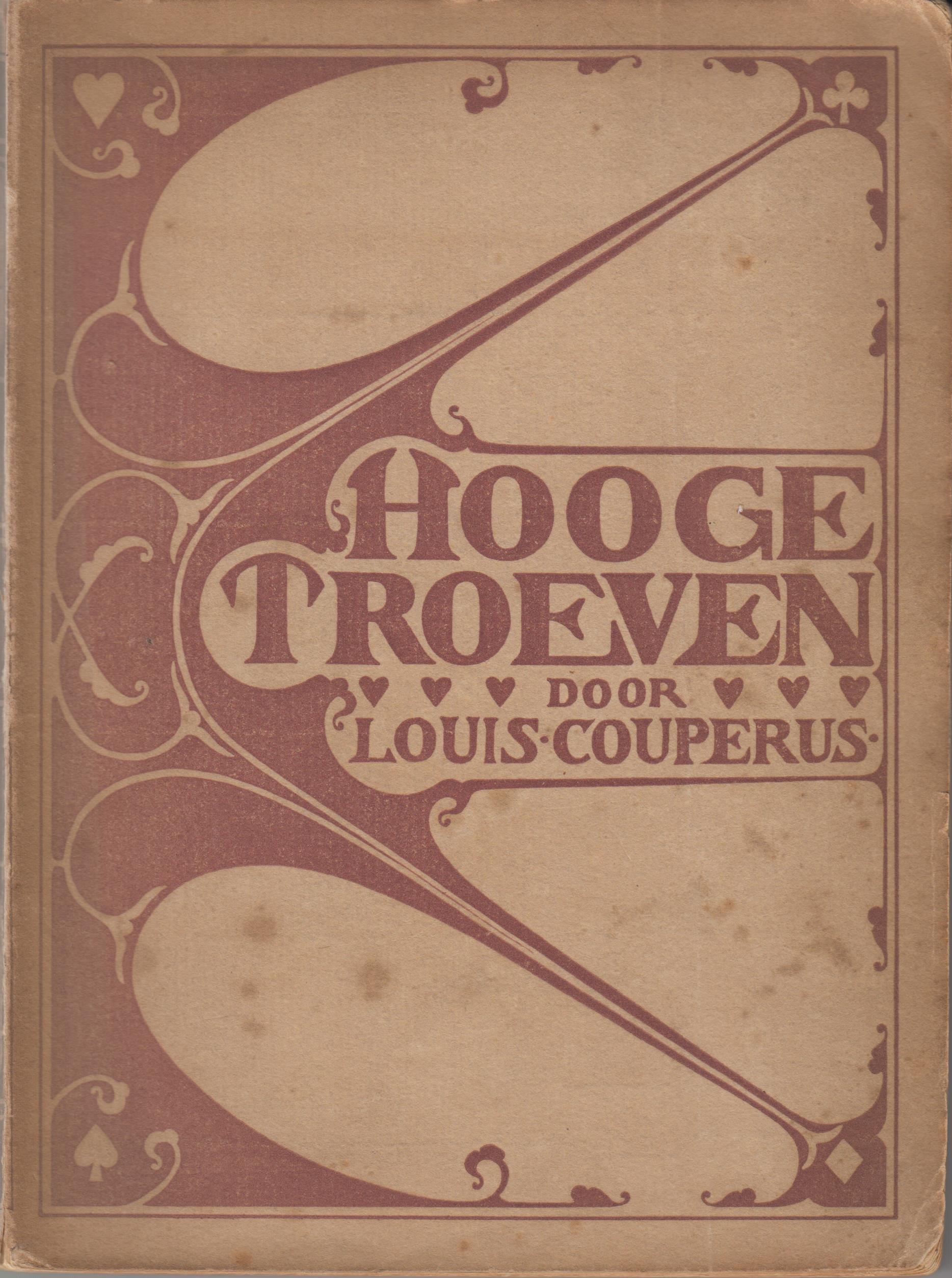 11. COUPERUS, Louis Hooge troeven. Amsterdam, Veen, [1896]. Ingenaaid [omslagontwerp H.P. Berlage]. (4), 124 p. 1e druk. Omslag verbleekt, binnenwerk roestig, maar toch nog in redelijke staat.