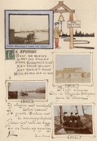 * Geheel getekend, zeer vermakelijk album ter herinnering aan reisjes van drie katholieke geestelijken, langgerokt, in de jaren 1900 en 1901. Voorin een kaart van de bezochte plaatsen: o.a. Moerdijk, Engelen, Den Bosch, Haren, Tilburg, Moergestel, Parijs en Lourdes. Getekend door H.W. van Enschot (1876-1945), later pastoor te Diessen. Bevat een vrolijke quasi-titelpagina ‘Zonnige dag te ‘s-Hertogenbosch, Leuke Uitgave van de Uitgeversmij El Trio’, met kleine maar duidelijke fotootjes van bezienswaardigheden van Den Bosch. Ook een fotoverslag van een vakantie in Langeweg en Moerdijk, van een verblijf in Parijs en in Lourdes en van het vertrek van een van de drie naar Noorwegen. Tenslotte een zelfportret van Henricus van Enschot als lid van het Sint Lucasgilde, het gilde van de kunstenaars. En Van Enschot was duidelijk een begaafd en geestig man. Maar waarschijnlijk heeft hij niet meer aan Sint Lucas geofferd na dit leuke art-nouveau-kunstenaarsboek.
