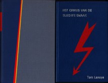 2. LANOYE, Tom Het cirkus van de slechte smaak. Antwerpen, Daedalus, 1986. Blauw heelleder met ingelegde rood lederen bliksemflits en belettering in zilver [Rob Hemker]. 120 p. 1e druk.