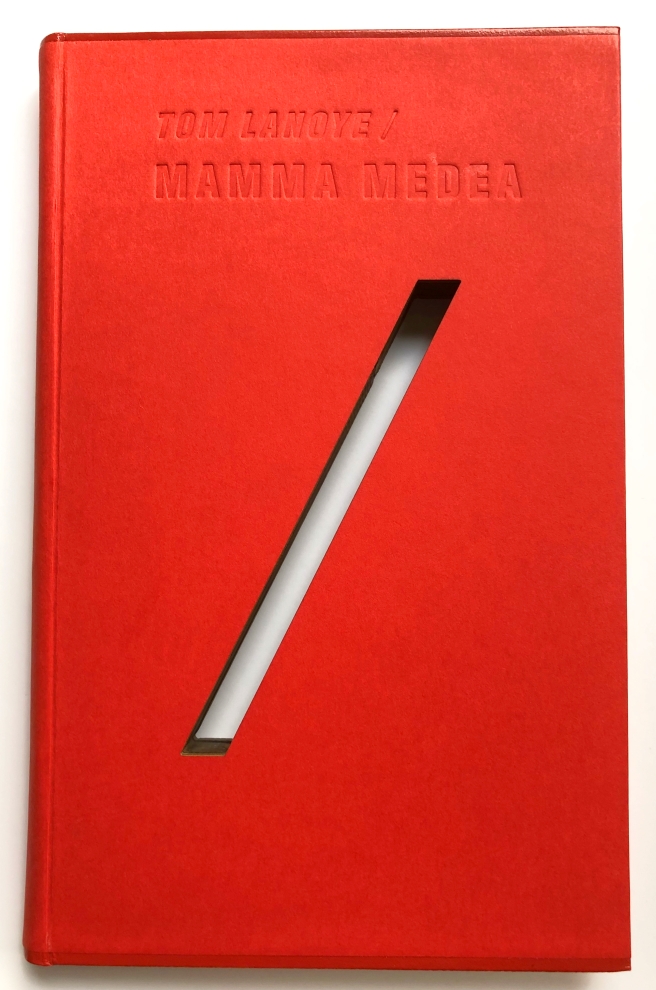 12. LANOYE, Tom Mamma Medea. Amsterdam, Prometheus, 2001. Blindgestempeld karton met lederen boven- en onderrand en een diagonale uitsnede door het gehele boek; in foedraal (Handboekbinderij De Pers). 132 p. 1e druk.