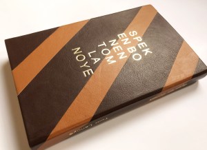 * Catalogus verschenen bij de opening van de gelijknamige tentoonstelling in Museum Meermanno. De monsters zijn voorbeelden van materialen die in verschillende luxe-edities van Lanoye’s boeken zijn verwerkt. Conceptueel & leuk!
