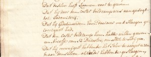 Incidentally, the court martial contains a nice detectivelike passage where the paleness of ink leads to the discovery that some notes were not written at the same instance. The lawyer response brings life’s details very close: ‘Voor redenen van de verandering van inckt geevende: off de verandering van pen, off het te diep instippen, en meerdere of mindere swaere hand, ofte oock het omroeren, off niet omroeren van den inckt, om dat er ook boomwoll in de kooker soude zijn geweest’: For reasons given for the change of ink: either the change of pen, or putting it in the ink too deeply, and a more or less heavy hand, or also the stirring, or not stirring of the ink, because there would also have been cotton in the inkwell. (p. 18 in the written text, p. 711 in the printed one).