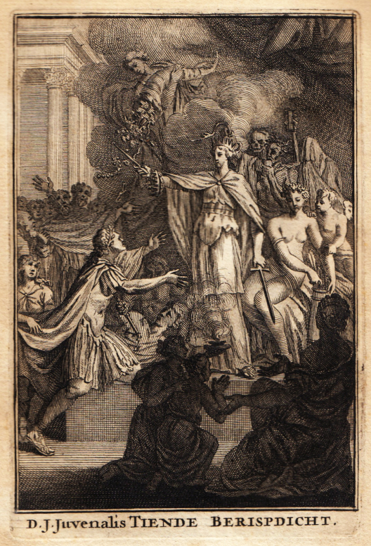 D.J. Juvenalis, Satyra X of Tiende Berispdicht in Nederduitsche Vaerzen vertaald… door Nil Volentibus Arduum. 4 editions from 1679 to 1713. The second edition was used, published by Erven Jakob Lescaille, Amsterdam 1700.