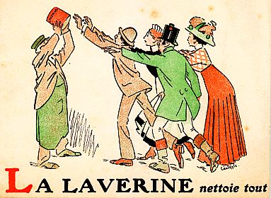 13. CARLÈGLE, Charles Émile (dessins) La Laverine nettoie tout. Paris, Société Française La Laverine, circa 1925. Oblong 12 x 16 cm. Couverture originelle illustrée. 8 p. Petit froissure, quelques rousseurs.