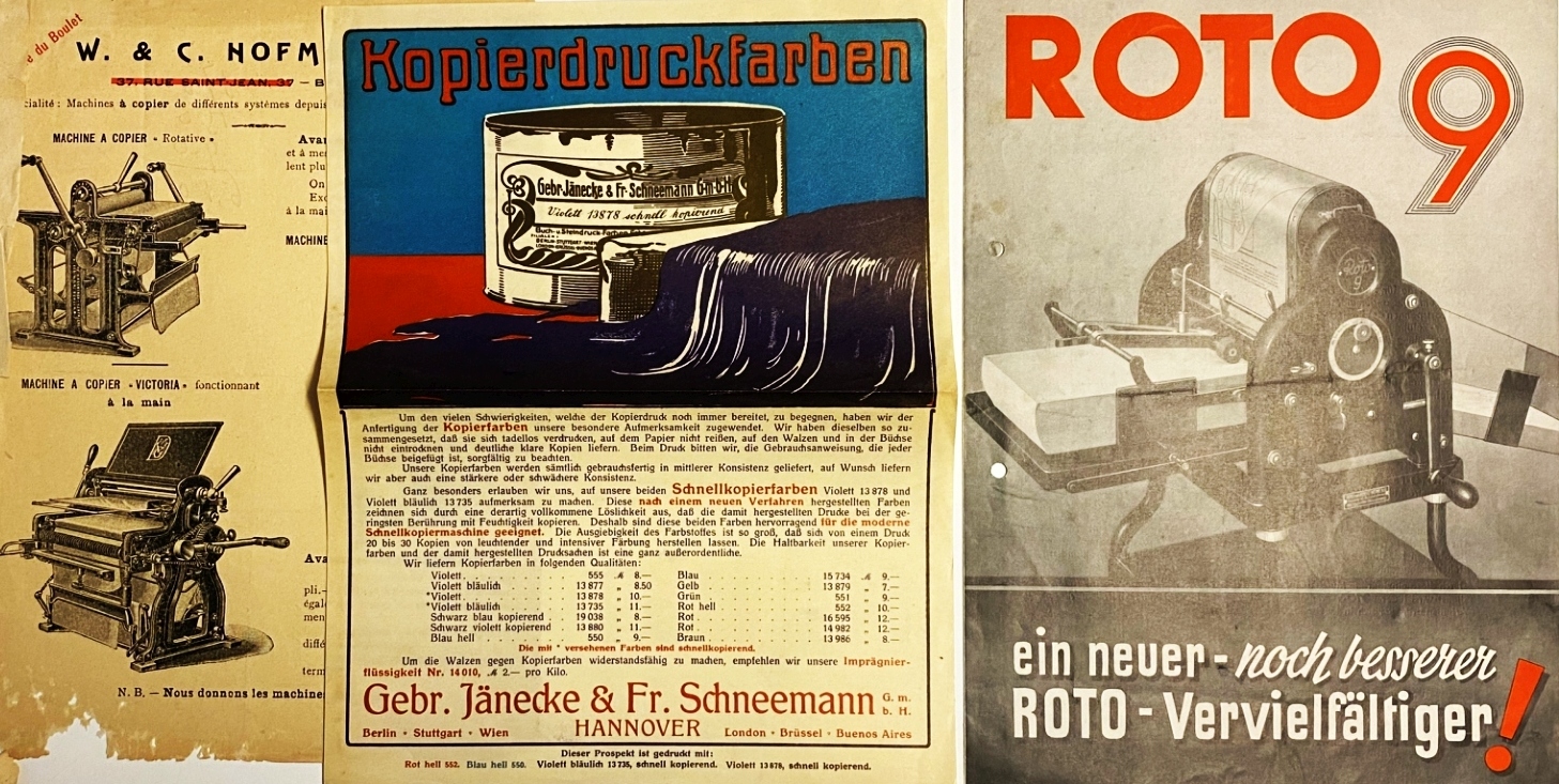 30. KOPIEERMACHINES, INKT Ca. 5 bladen en folders, vnl. Frans of Belgisch, 1900-1950.