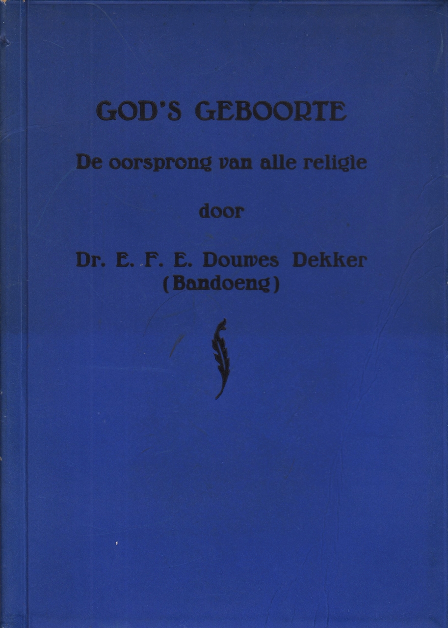 6. DOUWES DEKKER, E.F.E. God’s geboorte. Een verhandeling over de stellingen van de Indische wijsgeer, Petrus S.L. Ward Kalengkongan over de oorsprong van alle religie, op populaire wijze uiteengezet door Dr. E.F.E. Douwes Dekker (Bandoeng). Amsterdam, De Ploeger, [1938]. Karton. 64 p. 1e druk. Papier iets roestig.