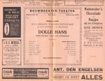 8. FABRICIUS, Jan Dolle Hans. Indo-drama. (Programmaboekje van het Louis Bouwmeester Theater, Wagenstraat 79, Den Haag). Den Haag, Louis Bouwmeester Theater, [1918]. Geniet. 8 p. Met plattegrond en allerlei geïllustreerde advertenties. 1e druk. Goede staat.