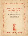 34. NEDERLANDSCH-INDIË Koninklijke woorden van H.M. Koningin Wilhelmina. 10 mei 1940 -10 mei 1941. Verzameld door E.G. Kroon-Nédéla. (Batavia), Zonder uitgever, 1941. 24 x 19 cm. Geniet. 48 p. Met enkele foto’s. Voorwoorden van H. Jiskoot, B.W. Kroon en vice-admiraal C.E.L. Helfrich. 1e druk. Omslag wat vlekkig.