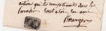 5. BÉRANGER, Pierre-Jean de Lettre autographe signée, à un ami. Petite feuille, écrite à l’encre noire, recto seulement. 14,2 x 10,0 cm. Collé sur une autre feuille. Lettre sans salutation, signée ‘ton ami / Béranger’ et estampillée d’un sceau ‘JB’ en noir. Un peu froissé d’un côté, quelques rousseurs.