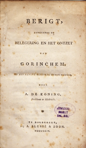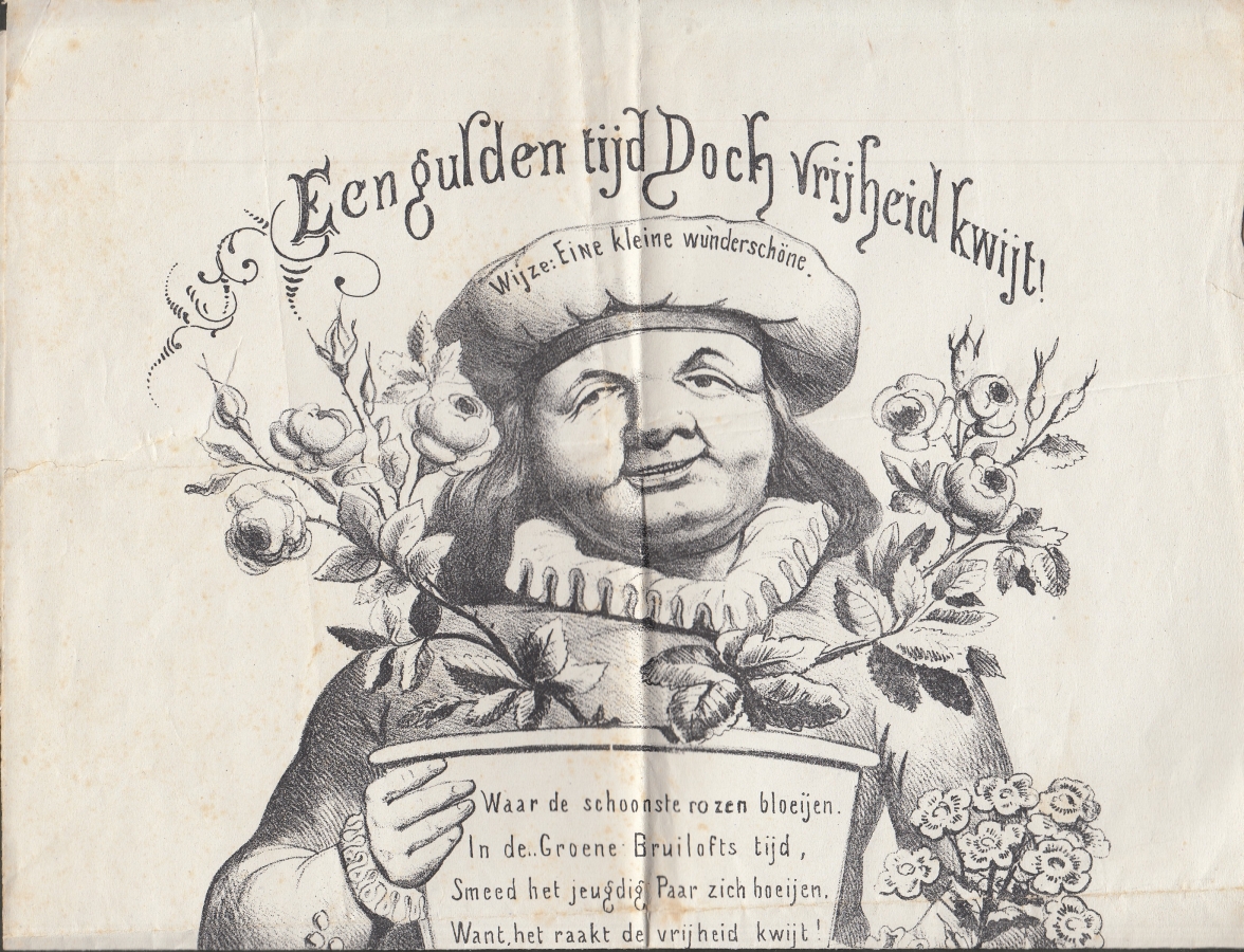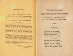 2. Bijgevoegd: H.J. van LUMMEL, Neêrlands zilveren vreugdedag (12 mei 1874). Opgedragen aan Zijne Majesteit den Koning. Amsterdam, Tresling & Co., 1874. 53 x 67 cm. Grote getinte litho met afbeelding van de kroning van koning Willem III, van Bronbeek, de herdenking van de inname van Den Briel en van de overstroming bij Leeuwen. Met achtregelig gedicht van Isaac da Costa: ‘Den heer der legerscharen’.