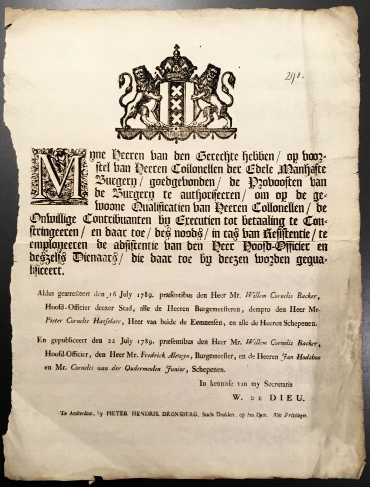 19. GRONINGEN, ORDONNANTIE Instructie voor lieutenant ende hooftmannen, mitsgaders secretarien ende dienaeren vande Gerichts-camer der Provincie van stadt Groningen ende Ommelanden, waer nae sy sich van wegen de Hooge Overicheyt ende Heerlickheyt derselver, inde bedieninge haeres Ambts respectievelijck sullen hebben te reguleren. Groningen, Wed. Edzard Huysman, 1667. Zonder omslag, uit convoluut. 60 p. Met groot Gronings wapen en grote initiaal I. Netjes. Veel regels oudtijds in pen onderstreept.