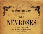 26. ROLLINAT, Maurice Les Névroses. Avec un portrait de l’auteur par F. Desmoulin. Parijs, Charpentier, 1883. Ingenaaid. VIII, 400 p. ‘Deuxième mille’. Scheefgelezen, roest, wat verfomfaaid.