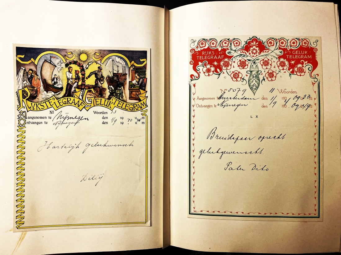 * Curieus genoeg met aanduiding van de drukker: ‘De Boer, Tegal’. In Nederlands-Indië dus. Met artikelen over de bruidegom: ‘Een veelzijdig ontwikkeld persoon, met een vroolijk, doch ernstig karakter’, maar ook over de bruid: ‘De Prinses als Keukenprinses’.