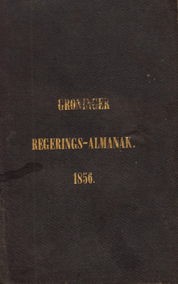 2. OOMKENS J.zoon, J. Oomkens’ Regerings-almanak van en voor de Provincie Groningen voor het jaar 1856. Groningen, J. Oomkens J.zoon, (1855). Zwart linnen. 254, 96 p. 1e druk. Lichte gebruikssporen.