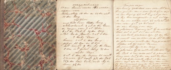 1. NOTITIEBOEKJE Inschrijfboek voor Derk K. Mulder beginnende den 29 Maart 1857. Ongelinieerd schrift met halflinnen band en gemarmerde platten. 15 beschreven bladzijden in bruine inkt met regelmatig, goed leesbaar cursief handschrift. Inliggend een rekening van Boekdrukkerij, Boek- & Papierhandel A. Mulder in Pekela, gedateerd 1884.