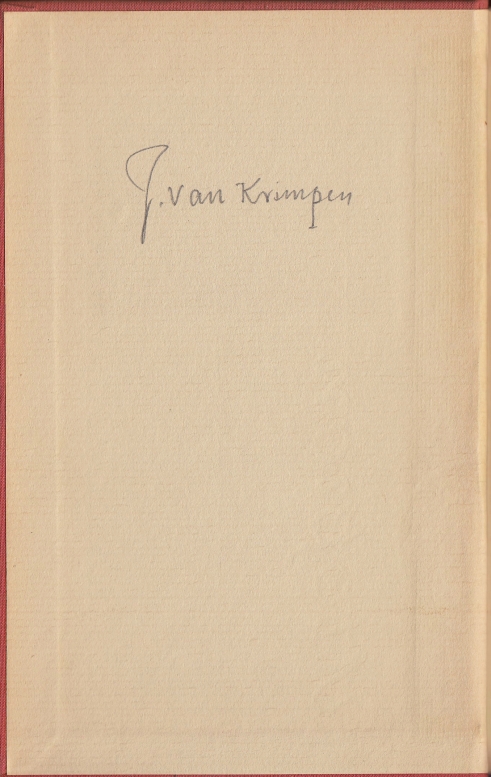 * This is one of 360 copies for The Typophiles, numbered No. 6. On the inside is the penciled signature of one of the most prominent Typophiles, Dutch type designer Jan van Krimpen.