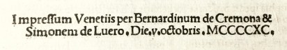 * Broad-margined theological work. With a large metalcut initial ‘N’ and 3 large woodcut initials (C, M and B) plus numerous smaller woodcut or metalcut initials. Title page printed in red with a list of the essays contained in this book and a phoenix. Goff J313.