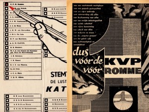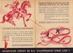 2. KVP, [1953?]. 20 x 13 cm. Vouwblad. 4 p. Cartoon voorop. Zeer gaaf.