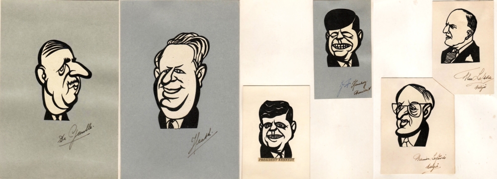 * Exemplaar met handgeschreven, gesigneerde opdracht van de tekenaar op de titelpagina: ‘Voor Ivan [Sitniakowsky] met vele goede/ wensen/ Fritz/ 27.1.89/ F. Behrendt’. Fritz Behrendt was vele jaren politiek tekenaar bij De Telegraaf, waar Sitniakowsky de culturele redactie bestierde.