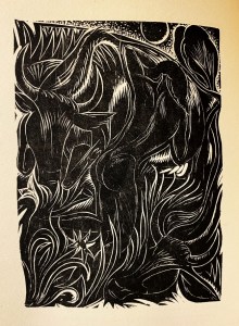 * Ongewone, hartstochtelijke dichtbundel met zijn expressionistische houtsneden en zijn gedistingeerde luxe uiterlijk. Een kwetsbaar boek dat niet vaak in zo goede staat is.