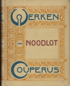 12 f. COUPERUS, Louis Noodlot. (Werken-band). Amsterdam, Veen, [1905]. Gedecoreerd linnen [‘Werken’-band van H.P. Berlage]. (8), 172 p. 3e druk. Iets vaal. Op het achterplat een paar kleine vlekjes. Modern exlibris. Naam voorin in rode inkt: T. Raats, en op p. 3 de naam ‘M. Piek-van Ditmar’.