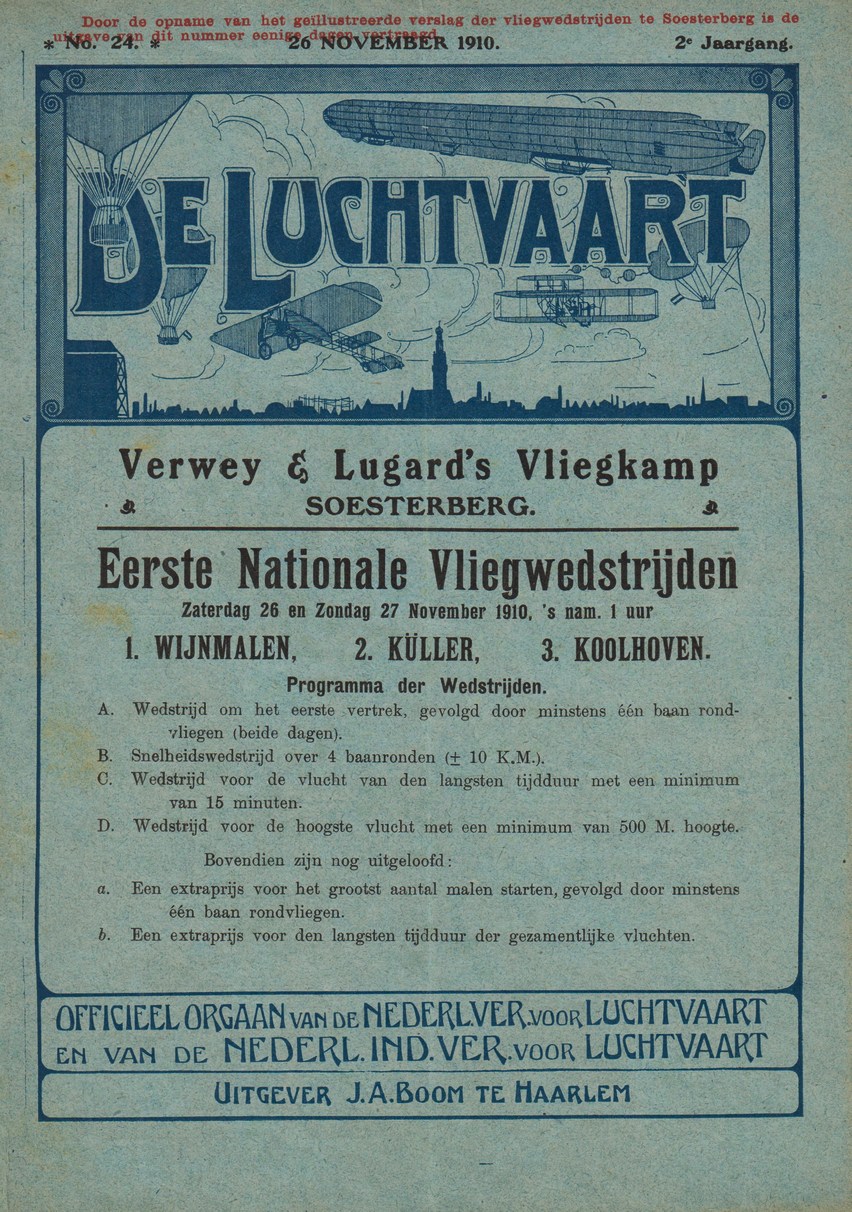 * Uiterst zeldzaam tweewekelijks tijdschrift dat een prachtig gedetailleerd beeld geeft van het begin van de luchtvaart in Nederland, met vliegtuigen en ballonnen. Fraaie advertenties, ook voor automobielen (Spijker!). Met inhoudsoverzicht van de gehele tweede jaargang.