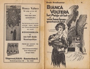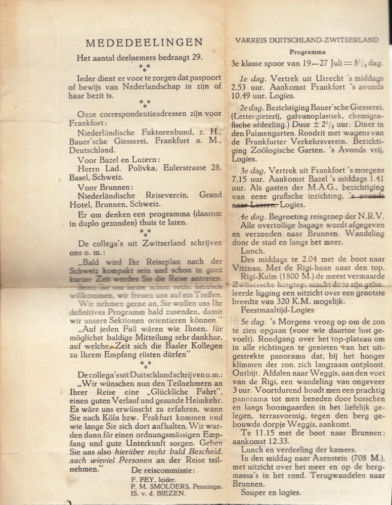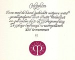 * Bevat een uitgebreide toelichting op het boek. Bovenaan de voorzijde kon de naam van een boekhandel worden ingevuld, een deel van de achterzijde is bestelbiljet. Een ingenaaid exemplaar zou 7,90 gaan kosten, een linnen 9,75. Een luxe-exemplaar in leer 40 en in perkament maar liefst 50 gulden (dat is bijna 900 euro anno nu).