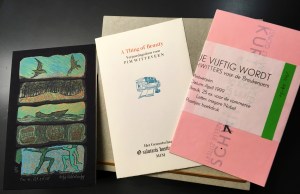 Ook met een overdruk uit het Drukkersweekblad van een toelichtend artikel ‘Dubbelroosterdruk (matjesdruk) en golfroosterdruk’ (1958) van Van den Bergh, die daar ‘v.d.s.’ op schreef, en enkele kaartjes ‘Aangeboden door de auteur’. Inliggend acht krantenknipsels uit 1958-1960 en een (zeer verhelderend) artikel door Karel Knip uit de NRC van 16 april 2005.