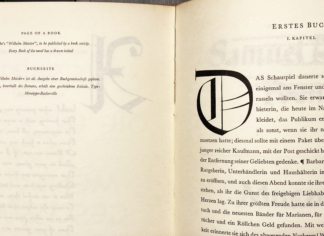 * Vijftiende-eeuws gedicht in middeleeuws Engels. Wilhelm Klingspor-Schrift is een beeldschoon, zij het moeilijk leesbaar gotisch type, ontworpen door Rudolf Koch in 1925, een groot ontwerper en liefhebber van Frakturtypen, getuige zijn poëtische uitspraak: ‘Wie dunkler Tannen würziger Harzduft, wie wenn die Amsel weithin durch den Abend ruft, wie des Wiesengrases leichtschwankende Zierlichkeit, herrlichste, deutscheste Schrift‘.