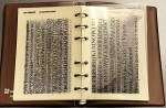 * We have about five leaves with the same typographic design, that were probably close together in the book. Some have a visible watermark: a crowned chalice with three fleur-de-lis symbols against each other, and a stylized Gothic letter ‘t’ below it. There are a few headings, with guide letters where capitals should have been drawn: Sepe stingit, Sollicit, Constitutis and Constitutus. The text concerns commentary on decretals, often by Pope Innocent III: ecclesiastical laws, which however also often regulated daily life. The text is in Latin and is full of abbreviations, which however can be easily overcome with some practice: ‘Inno’ = Innocentius for example. The ISTC number of this incunabulum is ip00059000. (The page is too large for the scanner).