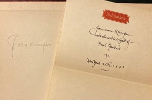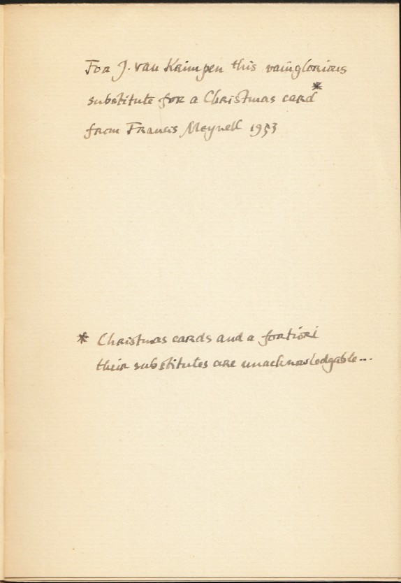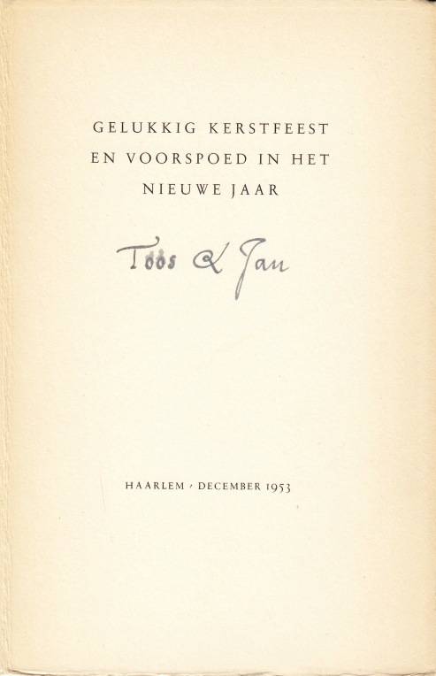 Afkomstig uit de bibliotheek van Gerrit Noordzij (al staat dat er niet in). Met inliggend gedrukt visitekaartje van Van den Bergh.