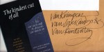 * Een demonstratie van meerlingdruk in hoofdletters. Van den Bergh (1890-1966) was, naast de eigenaar van veel andere kwaliteiten, de uitvinder van de papierbesparing door het gebruik van kleine, vetgedrukte hoofdletters, waarbij de tekst wordt verviervoudigd (in dit geval) door in het wit tussen de regels te drukken! Wanneer u een plastic raster gebruikt dat de te lezen regels laat zien en de tussenliggende regels afdekt, wordt het papier aanzienlijk efficiënter gebruikt. Zo heeft u één boek in vier talen.